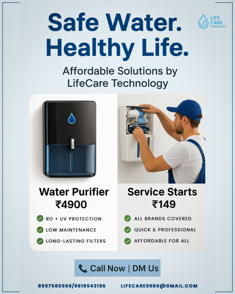 LifeCare Technology is a leading provider of RO (Reverse Osmosis) water purifiers and related services in Varanasi, Uttar Pradesh. The company offers installation, maintenance, and servicing of water purifiers, as well as sales of new RO units. With a focus on providing clean and safe drinking water solutions, LifeCare Technology aims to serve residential and commercial clients across Varanasi and surrounding areas.